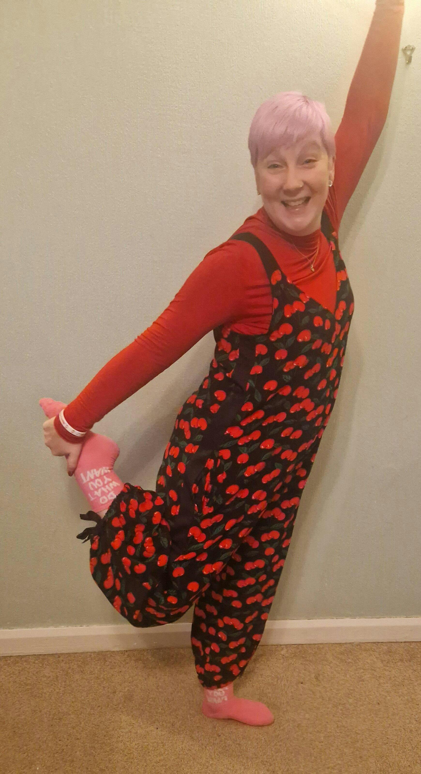 My cherry jumpsuit is the most comfortable outfit! You can dress up or use as pure active wear. Single Swan is amazing! Such amazing quality!